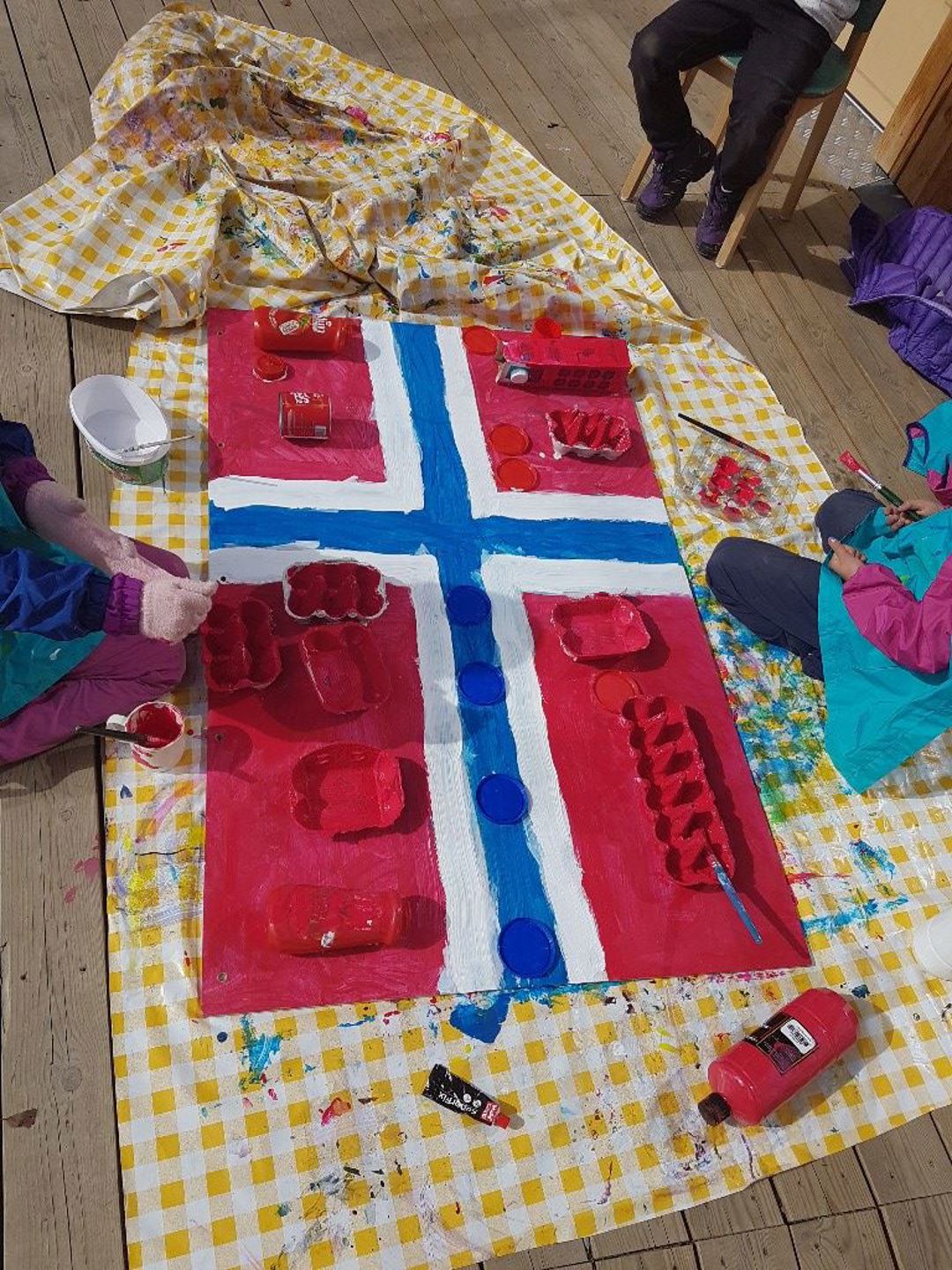 17. mai vil scenen i byen være pyntet av Tusseladden friluftsbarnehage, Kulturbarnehagen og Hamna friluftsbarnehage. Fokus er gjenbruk og vår barnehage bidrar med to norgensflagg, en sol og litt bjørk som er pyntet med glass og flaggbånd.