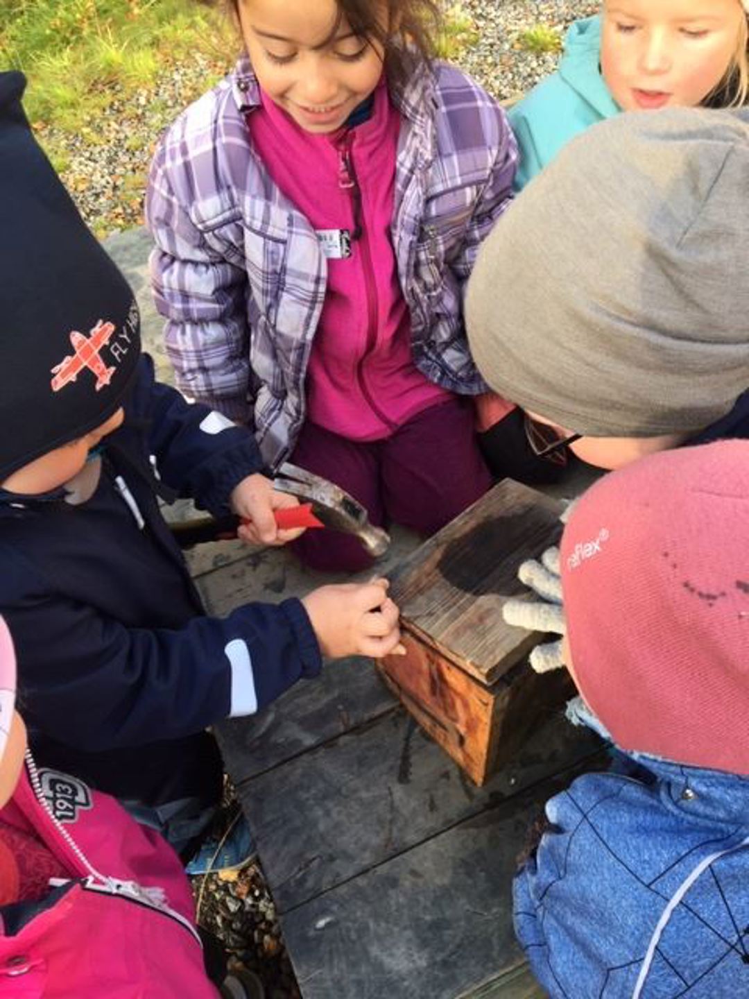 Det er viktig å tømme gamle fuglekasser, rengjøre den og sjekke om den må fikses litt på. Denne morgenen var det nettopp denne jobben flere barn på Blåmann deltok på. Nå er den klar til bruk igjen og fuglene kan flytte inn til våren.