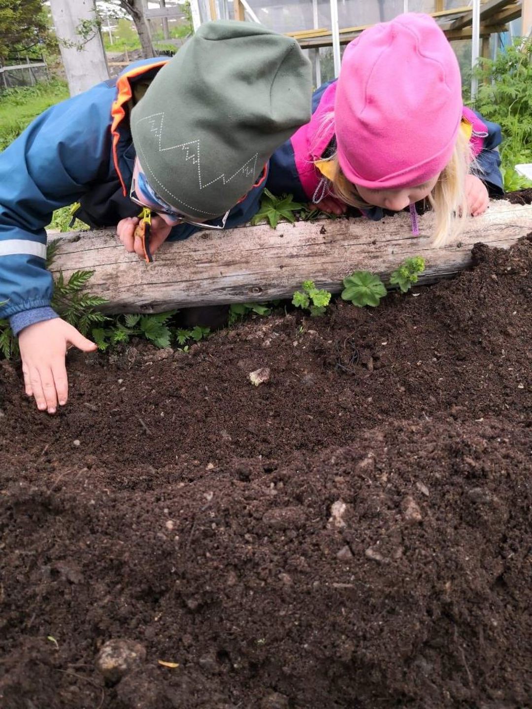 Denne uka skal poteten i jorda og i år er det gulløye og bragepotet. Alle avdelinger i fjæra setter potet, men først gjøres gode forberedelser med luking av ugress og spa opp jorda.