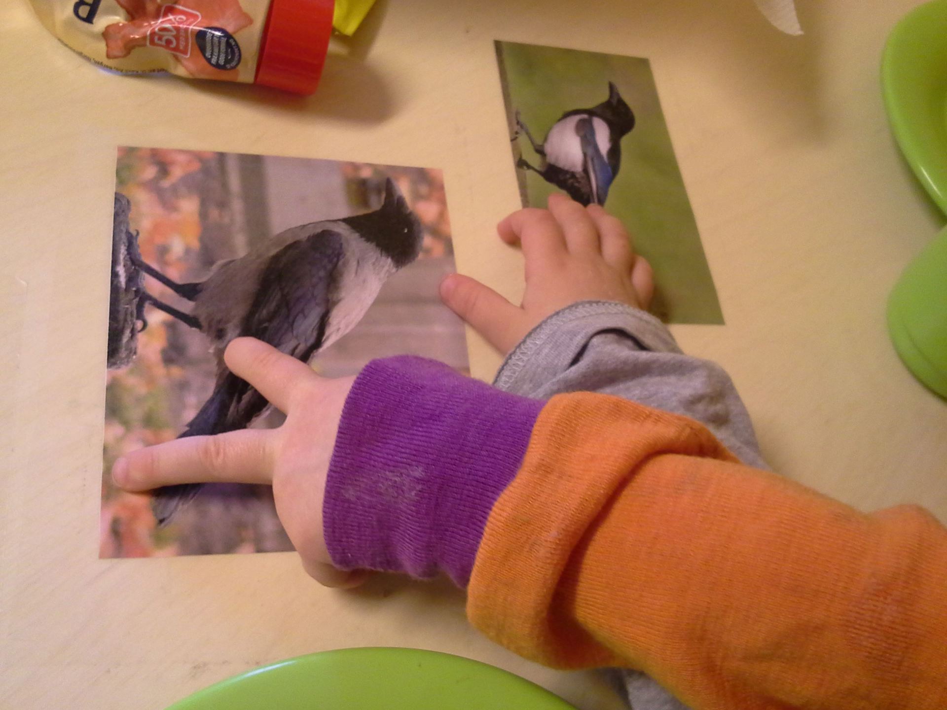 På Kjølen har vi limt bilder av måsen, kråka og sjura på bordet. Vi har fugler som tema nå, og barna er veldig engasjerte! De har lært allerede lært seg navn, lyd og utseende på de tre ulike fugleartene
