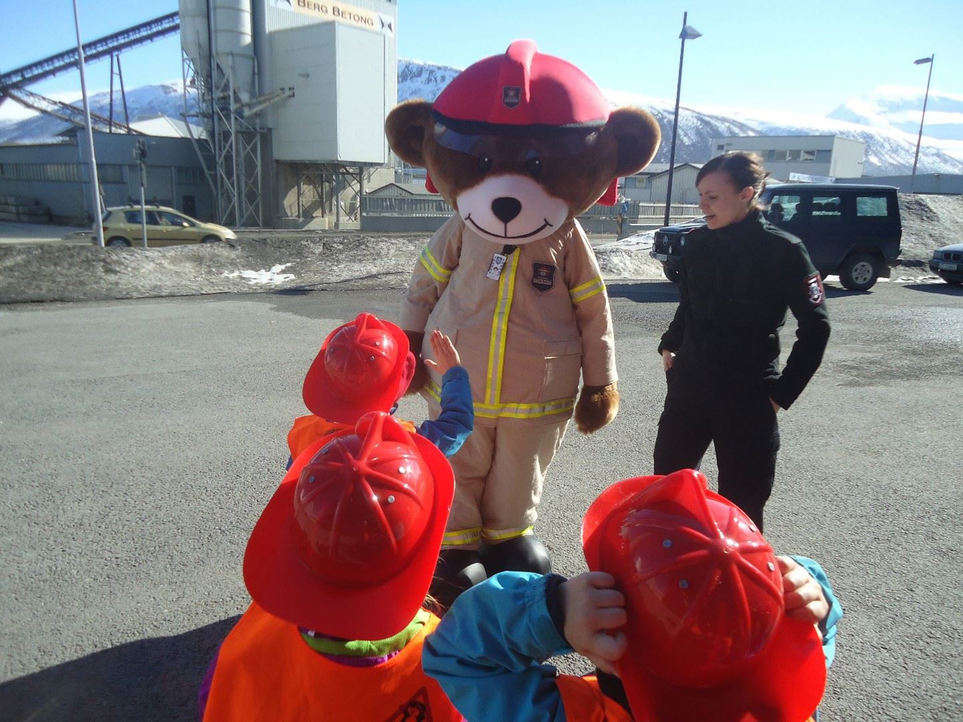 Tussene var på sitt årlige besøk på Brannstasjonen mandag denne uka. Barna fikk kurs i brannvern, røykdykke, prøve liften og de fikk prøve å spyle i brannslangen. En lærerik dag som ble avsluttet med et møte med selveste Bjørnis som er Brannstasjonens egen maskot.