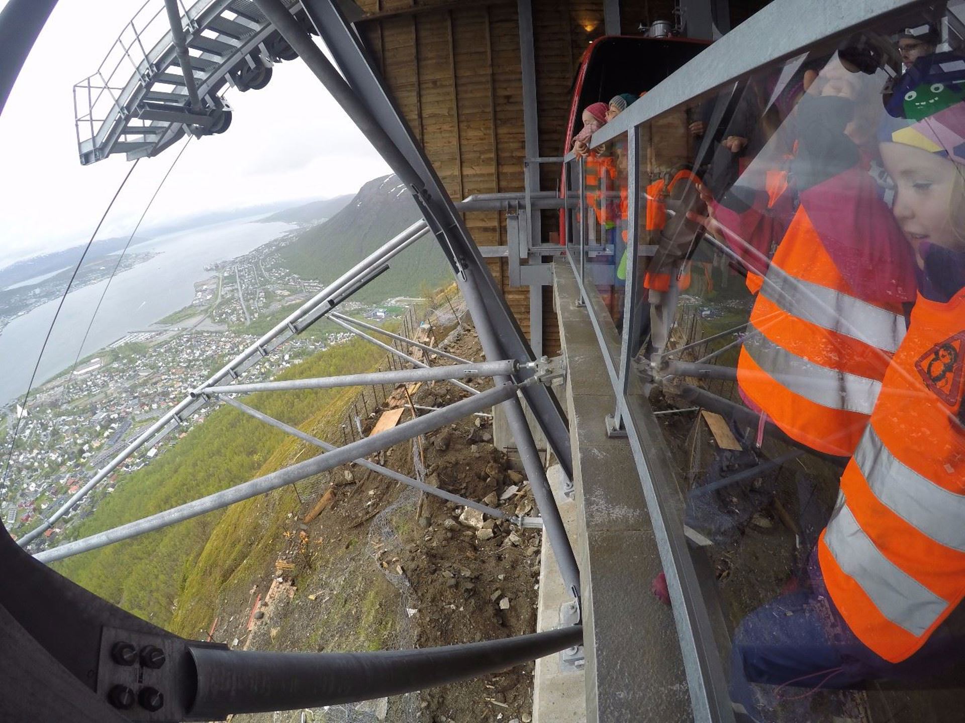 Tradisjon tro har vi hatt overnatting for tussene denne uka og som en del av opplegget besøkte vi fjellheisen. Det var en stor opplevelse og spennende å få se utover Tromsø by. Vi kosa oss med pizzasnurre lunsj på toppen.