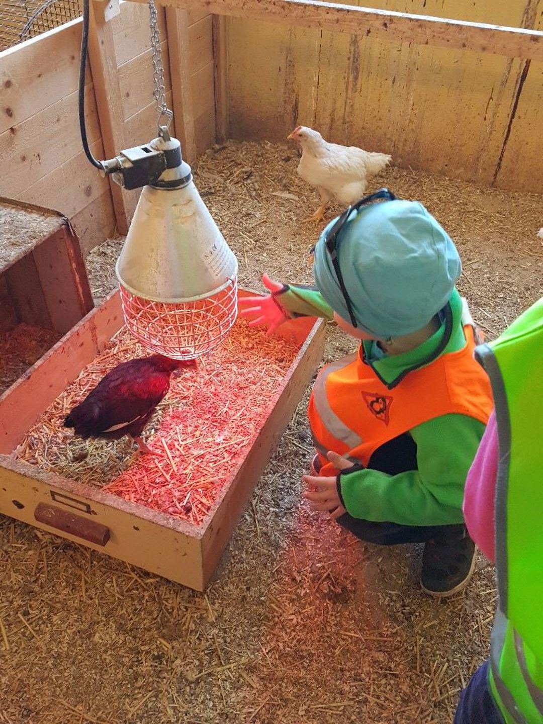 Da har vi vært på besøk i fjøset og sett hvordan kyllingene våre fra kull 1 har det. De har vokst mye og skal være der fremover hvor de trives godt. De fem kyllingene; Benedikte, Freesbee, Lotta, Spretten og Gullhår har nå nesten blitt definert med en hane og fire høner. Gullhår er blitt hanen i flokken. Ny kyllinger ankommer denne uken i fjærahuset.