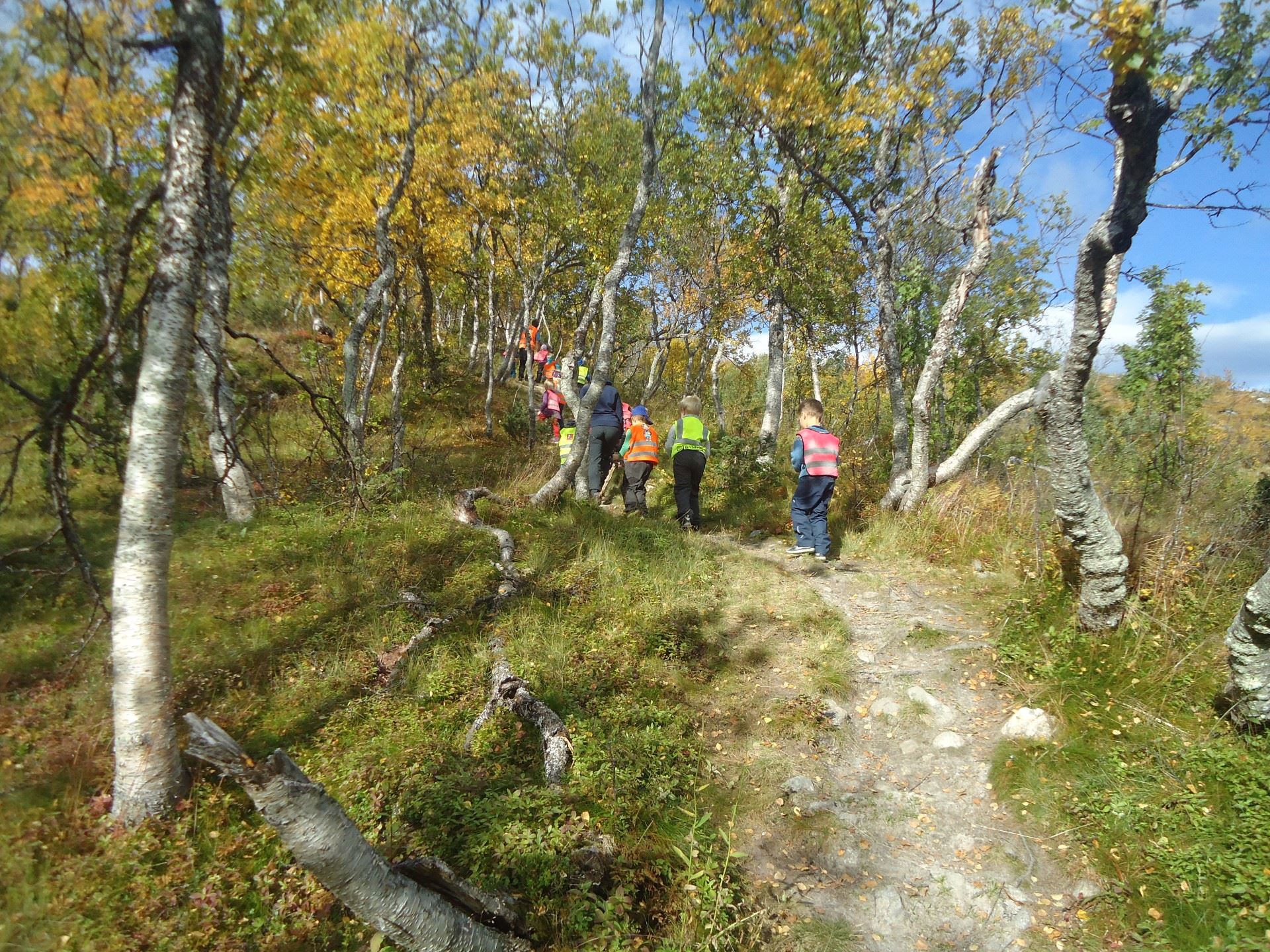 På veien opp hadde vi litt Ninja trening, vi øvde på selvkontroll og lærte noen triks av Heidi. Vi plukket blåbær og vi fant en geocatch på veien ned.