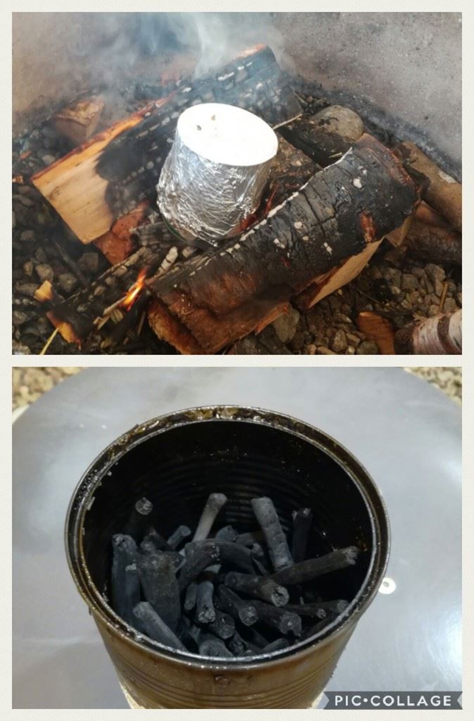 I dag sto laging av kullstifter på programmet. Vi fant pinner som vi spikket fri for bark, la dem i en hermetikkboks og hadde en god halvtime i bålet.