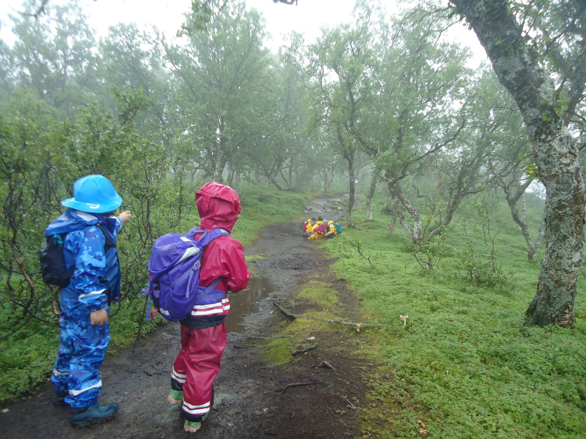Da var det klart for den 2.toppturen til 5-åringene våre. Det blei en frisk og flott tur i lett regn, blåbærspising og gjørme. Flere av barna hadde vært der før og de kjente seg igjen. Vi fant trollskjegg, flere soppfamilier og vi lyttet etter trollet under brua. Takk til foreldre som fraktet oss i bil til og fra Håkøya.