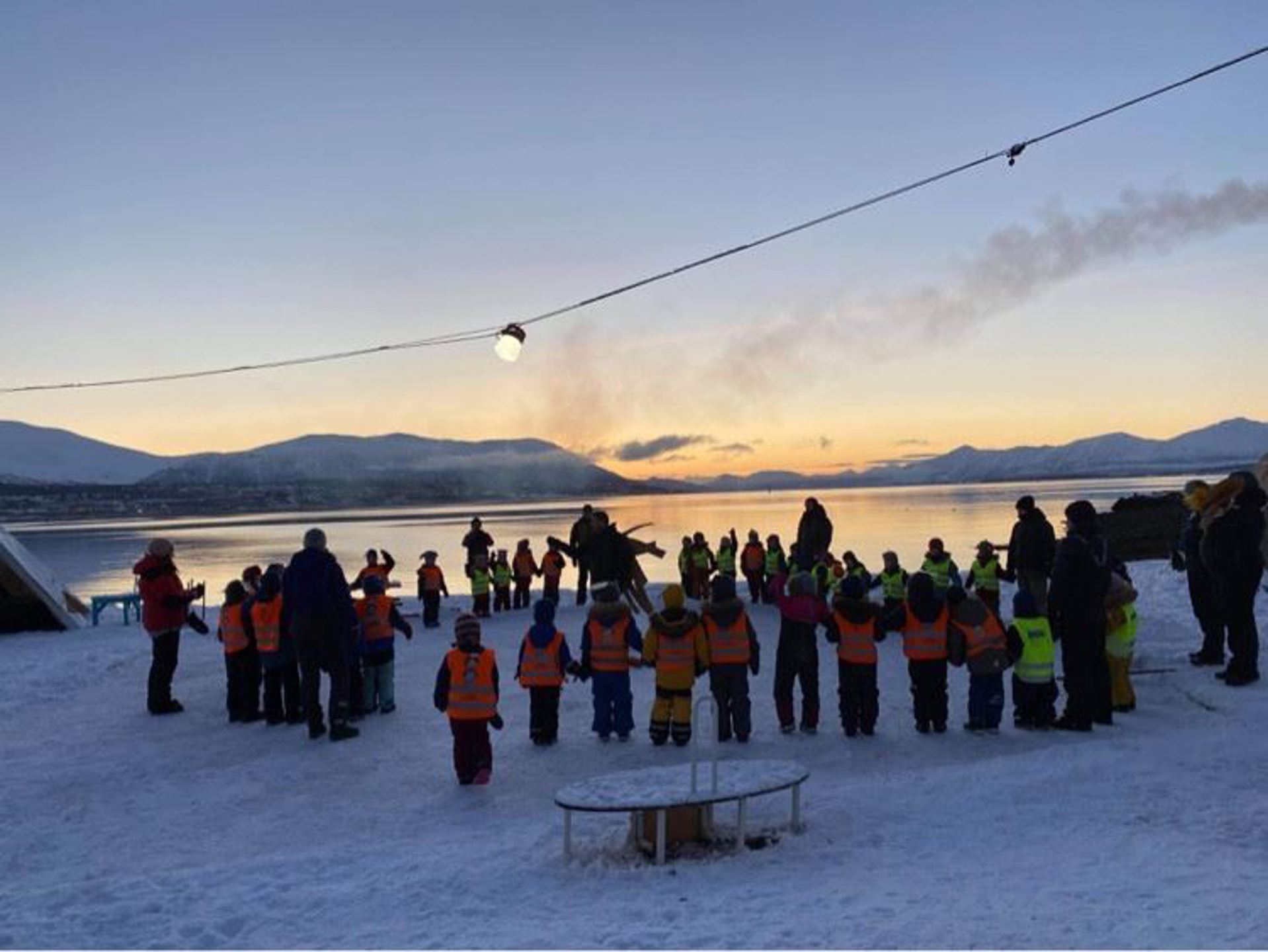 Vi gikk solmarsj opp mot sykehjemmet, sang solsanger og ønsket sola velkommen tilbake. Vi avsluttet med en varm kakao i koppen! Hurra! Nå går vi mot varmere dager!