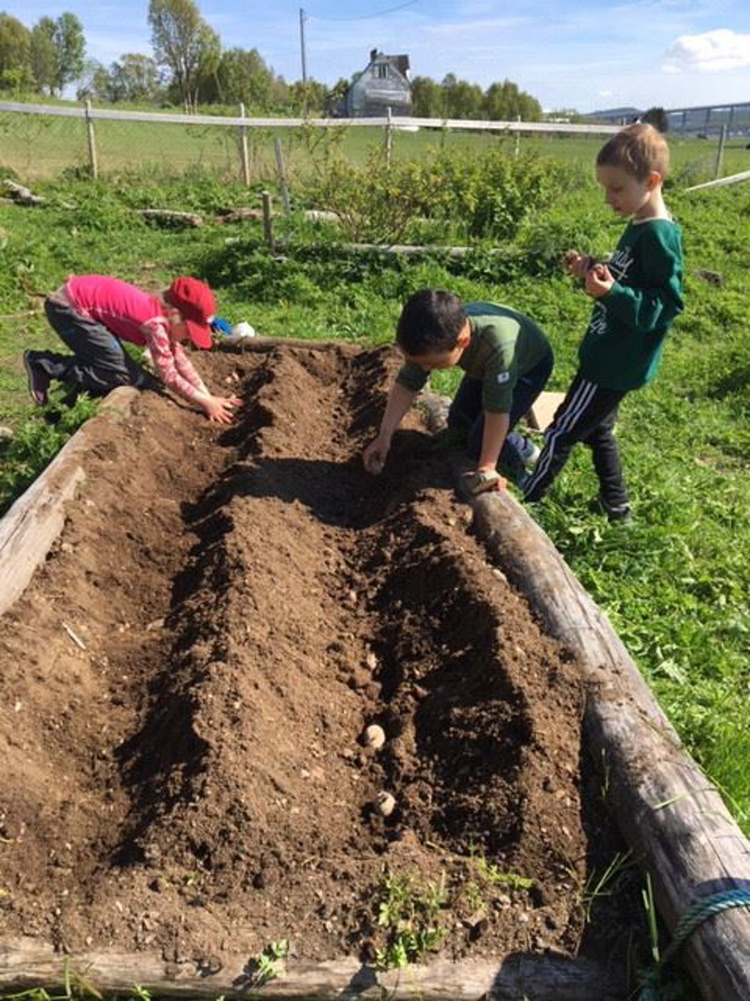 I dag har vi satt potet i potetlandet. Nå blir det spennende til høsten om det kommer til å skje magiske ting.