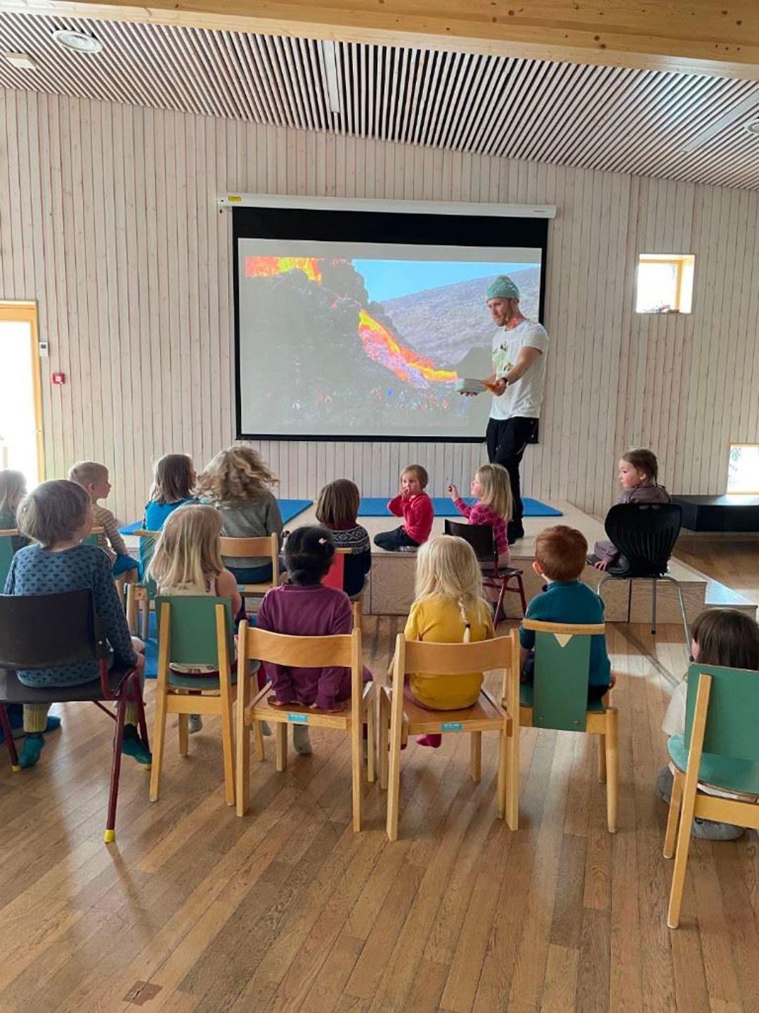 Oskar som har vært barnehagelærerstudent hos oss har lært oss om vulkaner og dette er et tema som engasjerer barna. Når han klarte å få tak i stein fra en ekte vulkan, ble det ekstra gøy. Oskar kan mye om vulkaner, han er jo fra Island!