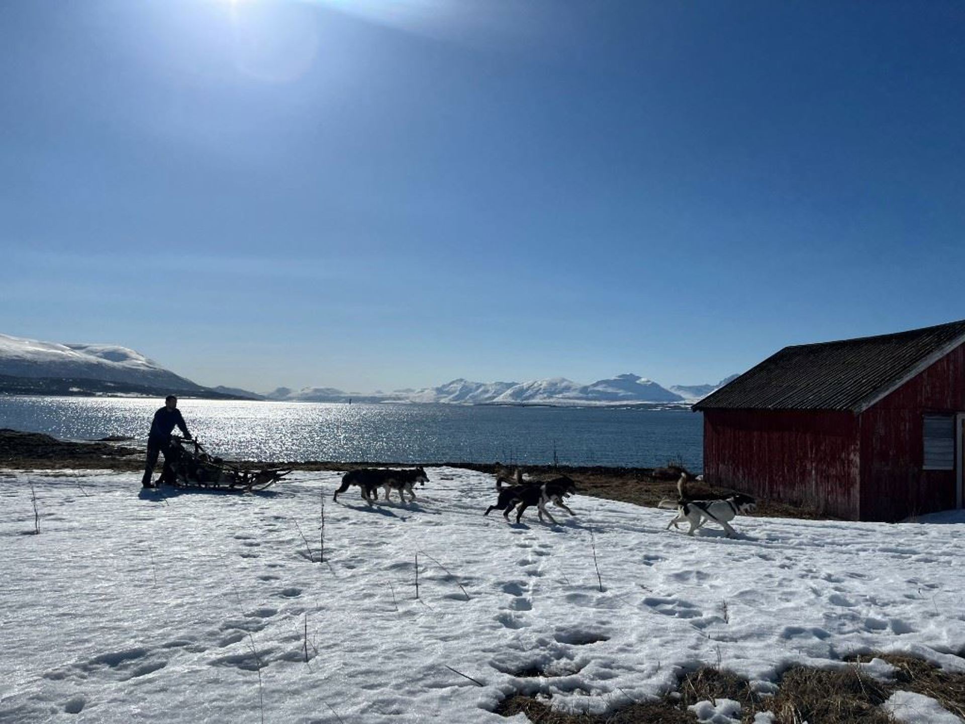 Fredag var vi så heldig å få besøk av foreldrene til Ingrid på Rautind med hundespann. Alle barna fikk prøve å sitte på i hundesleden en runde på jordet ved Kirketomta.