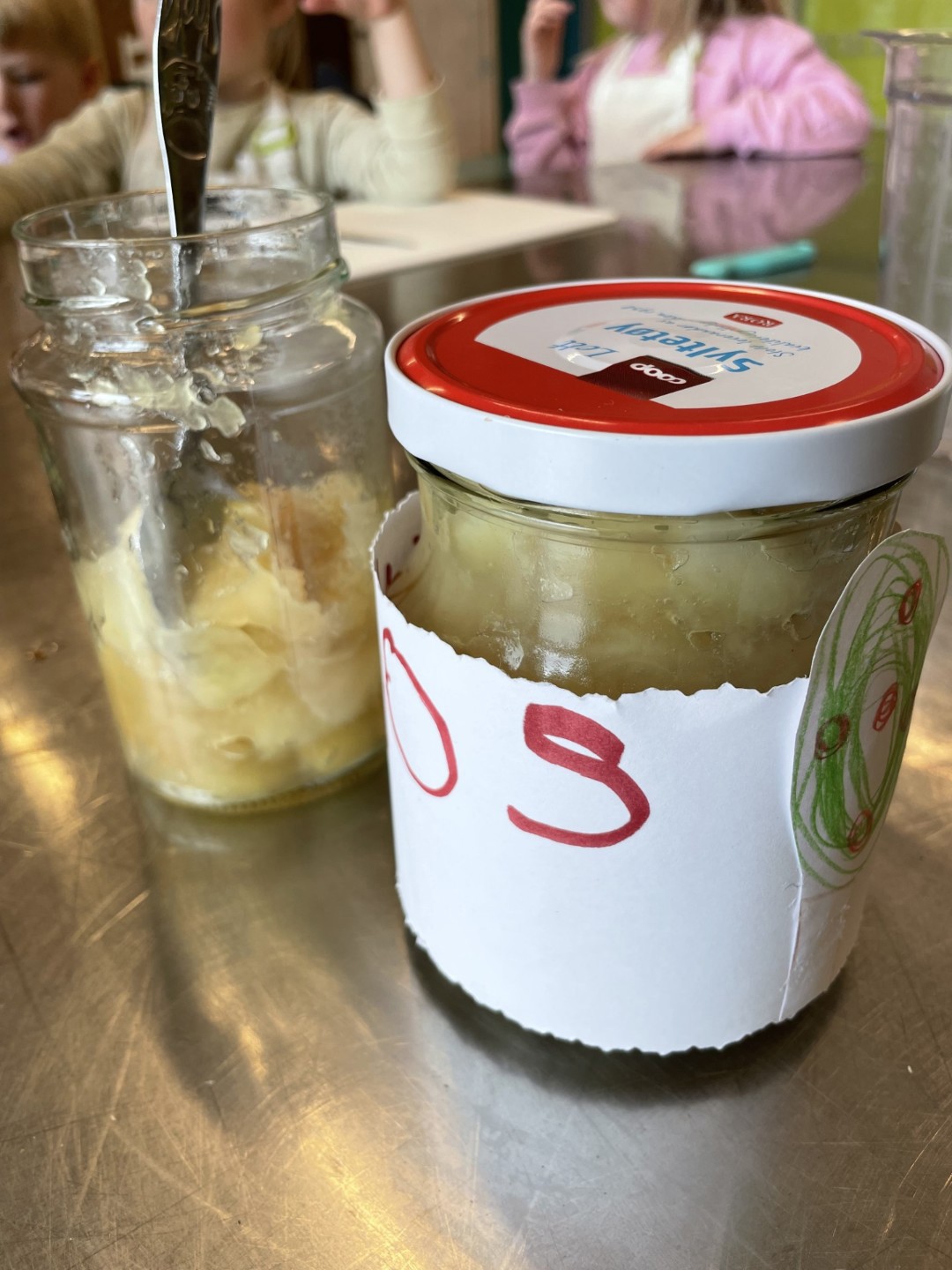 Vi har fått tak i nydelige polske epler. I dag har vi laget eplemos som vi skal spise på frokost grøten uti uka. Barna var ivrig i prosessen med å kutte opp epler og blande sitron og sukker. Artig at vi kan lage noe så godt.