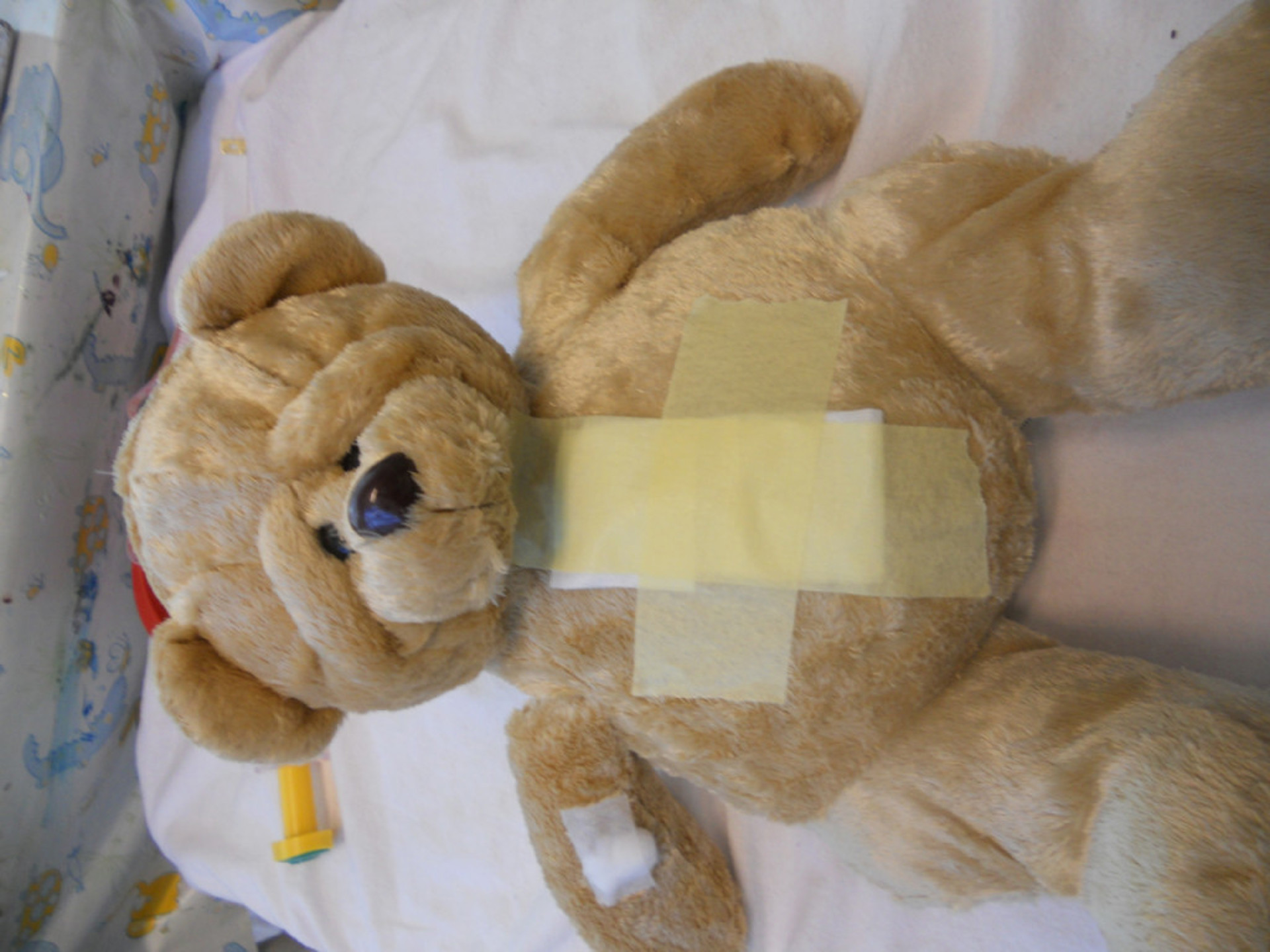 For to uker har kunstrommet i barnehagen omgjort til et bamsesykehus. Dit har alle barna i barnehagen tatt med seg egne kosedyr som de har tatt godt hånd om. Her er noen beskrivende bilder av leken som har foregått på sykehuset