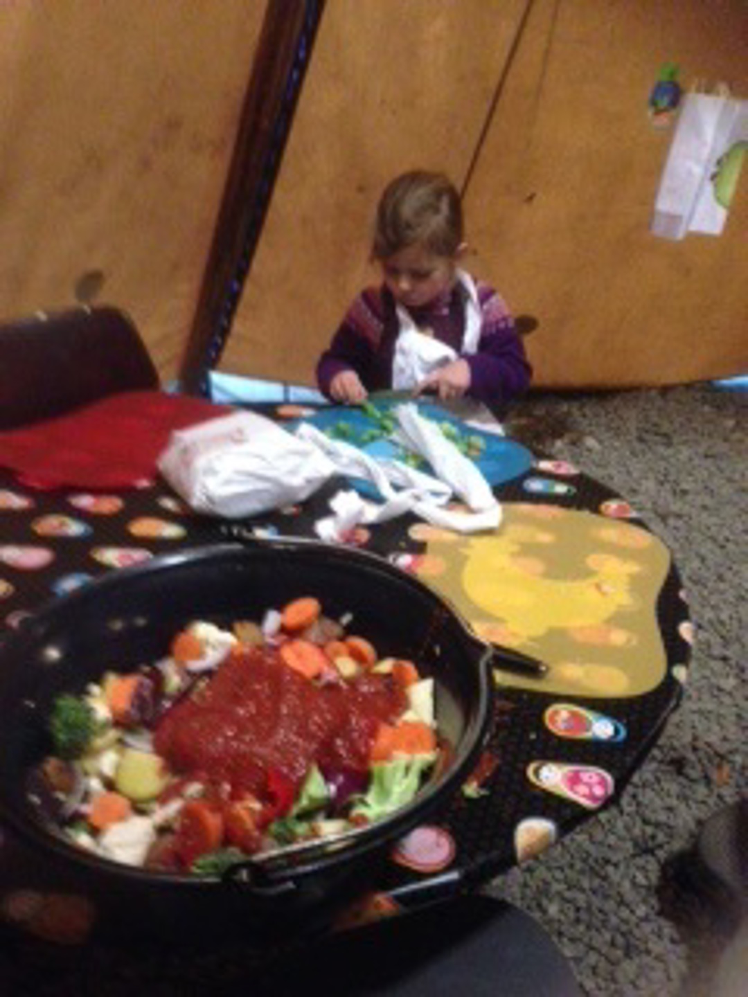 Gråtind bruker mye tid på forberedelser og tilbereding av mat sammen med barna. Barna synes det er gøy med variert mat og liker å smake på nye ting. Ikke sikkert det faller i smak første gang, men det gjelder å ikke gi seg. Vi bruker torsdager til baking og forberedelser til mat ute fredager. Fredager tilberedes mat ute eller i lavvoen, og det lages innkjøpslister og handles inn som del av det pedagogiske opplegget rundt matgruppene.