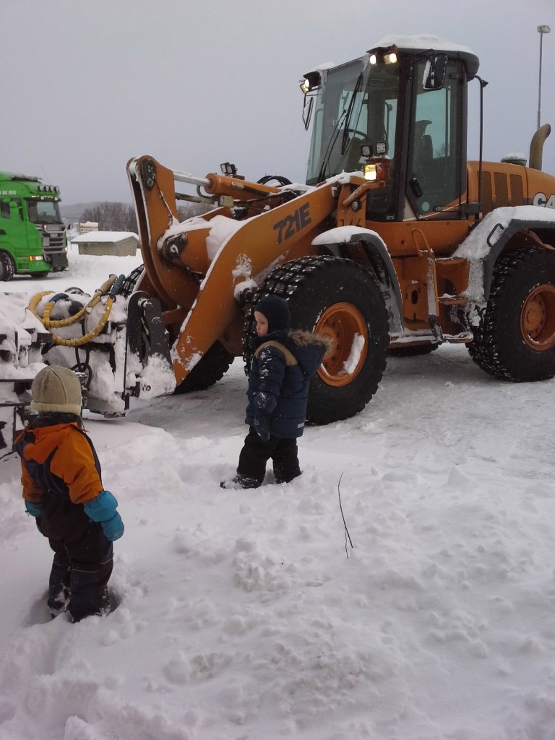 Snøen bringer ikke bare ake- og skiglede til store og små. Det er utrolig hvor mye glede, spenning og engasjement man kan finne i en hjullaster med brøyteskuffe ;)