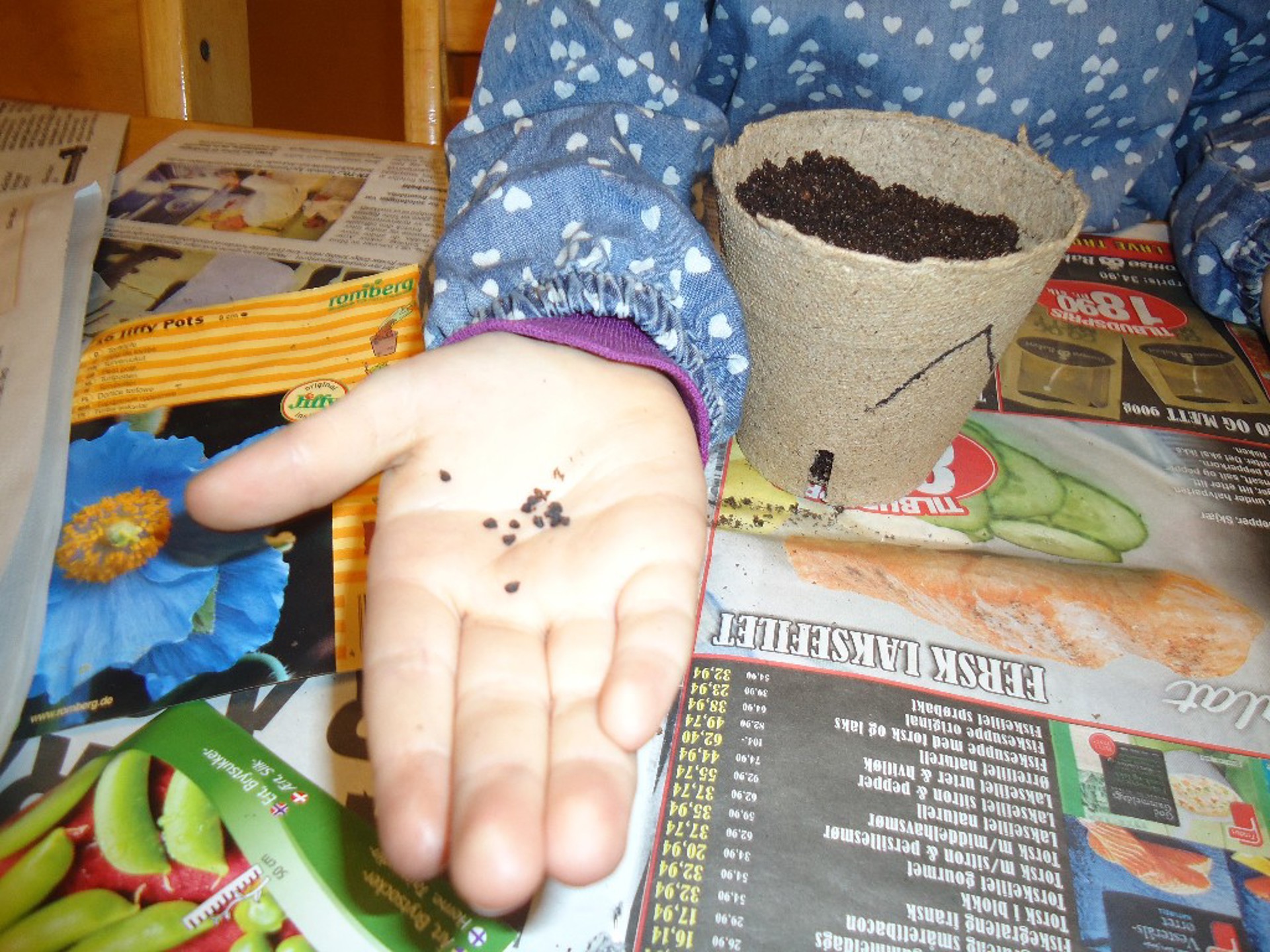 Denne uka har vi sådd sukkererter, purre og små solsikke planter. Barna tar de med seg hjem i påskeferien for de må vannes ofte. Barna elsket denne aktiviteten. Planten må sjekkes ofte, for plutselig kommer det noe opp fra jorda. Man kan aldri vite når det skjer!