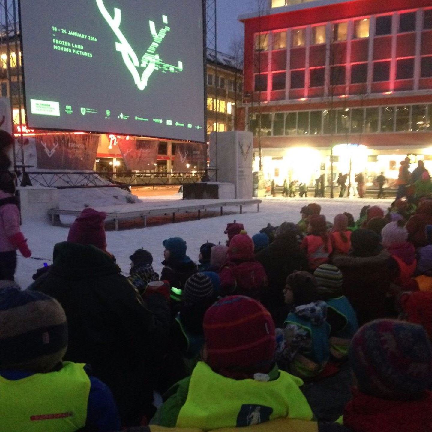 Tussene på Gråtind tok turen til byen på Tromsø Internasjonale filmfestival i dag. kl 09,00 på stortorget var det film på storskjerm ute. Mange kortfilmer fra ulike land, aldersgruppen 2-6 år. Vi hadde med campingstoler og soveposer og hadde en fin bytur med film ute i det fri.