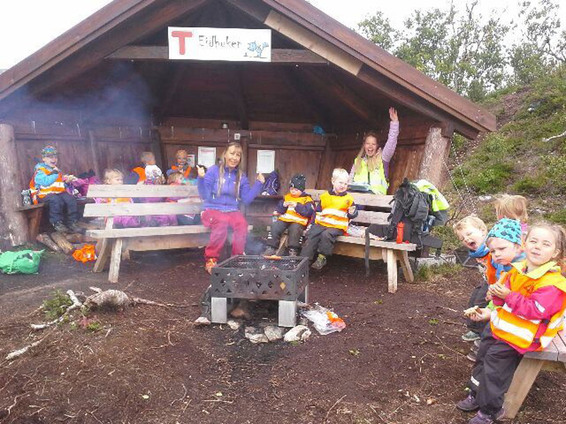 I dag var vi på vår første topptur. Vi hadde en fin tur til Eidhaugen hvor vi kosa oss med grilling og lek.