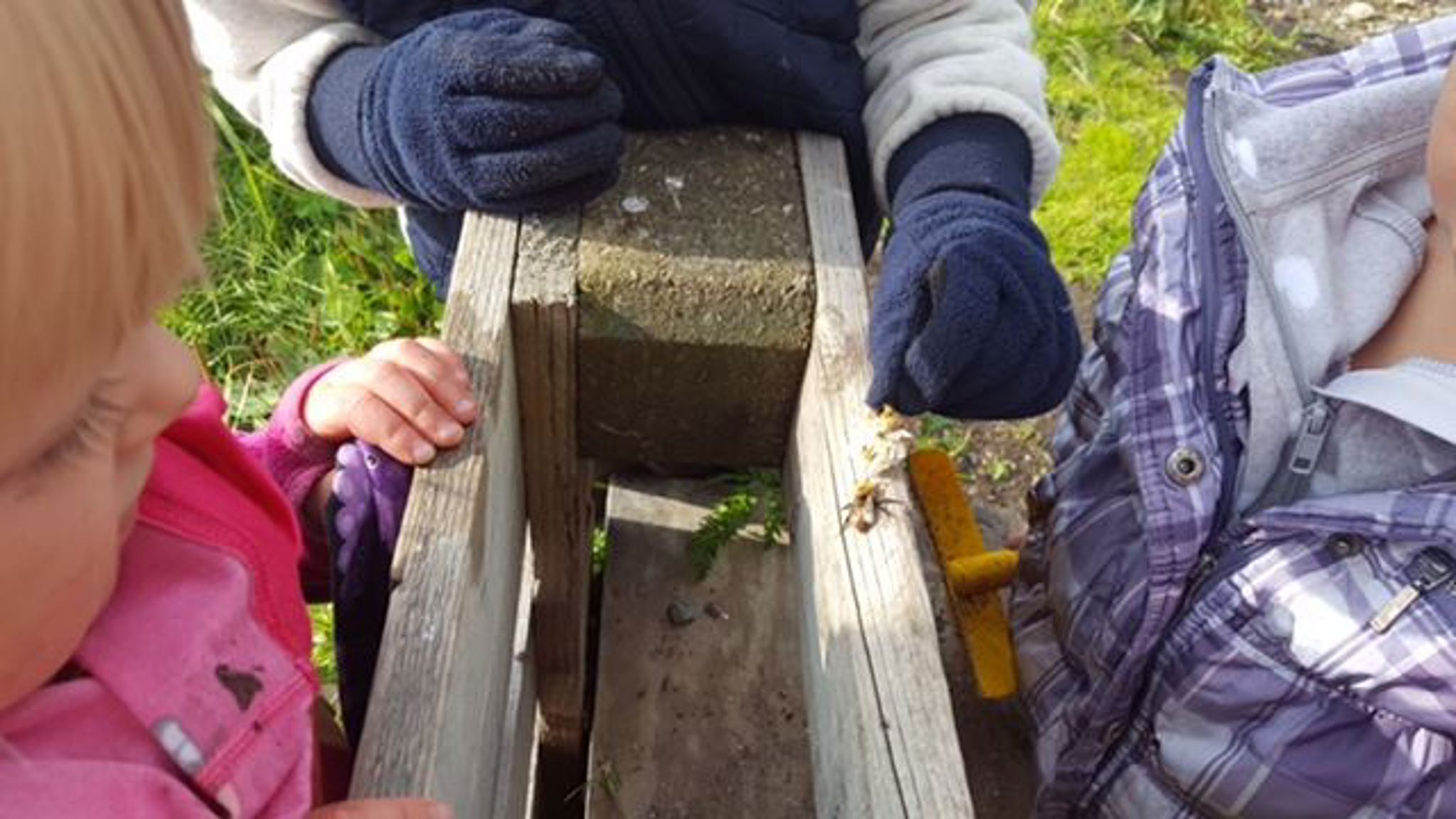 I dag reddet vi en humle fra den sikre død!. Den lå å svømte i vannet uten sjans til å komme seg opp! Ført var den sliten og forkomme med "bustesveis". Sander plukket en kløver blomst så den kunne spise litt, men den bare luktet og viftet litt med følehornene. Lenge satt vi der å fikk studere den stakars homla, hvordan den brukte beina til å tørke seg både forann og bak, og hvordan den slo fort med vingene for å få de fine og tørre igjen. Men så fikk den vingene og kroppen tørr og sveisen fin, og fløy hjem igjen.